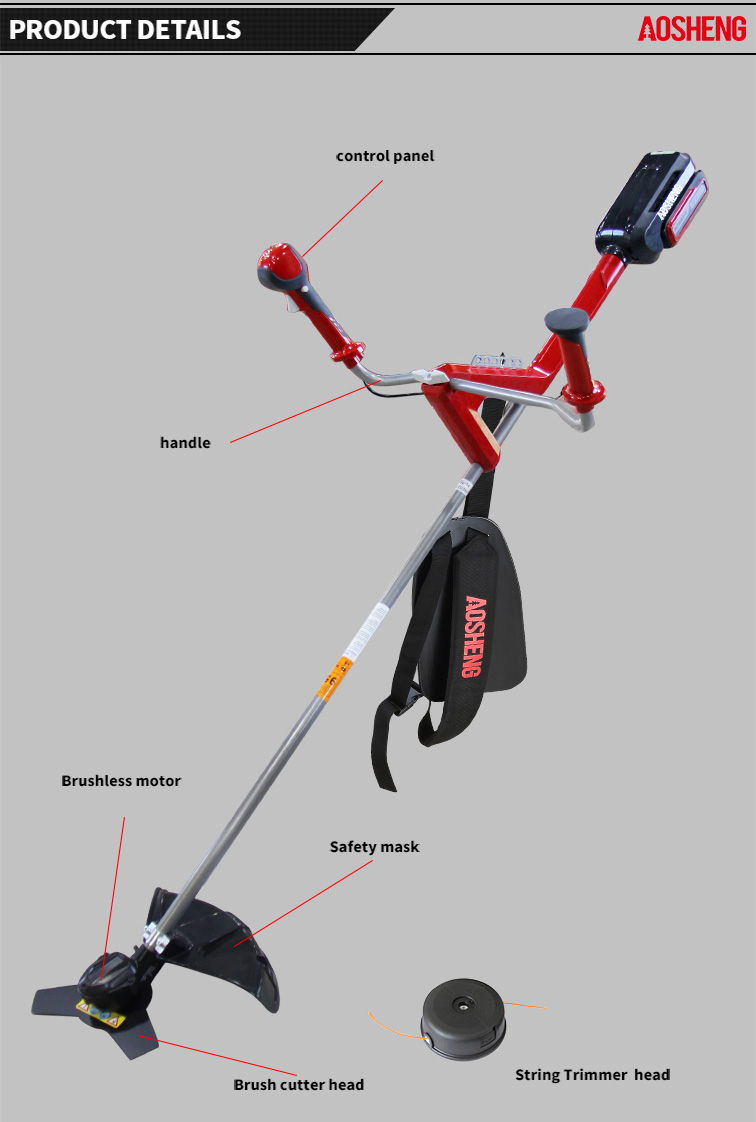 Motor profesional, putere puternică. consum redus, ușor de pornit. Rotire la 360° Mâner de control confortabil și centură din burete. Capul de tuns poate oferi o lățime de tăiere de 460 mm. d...