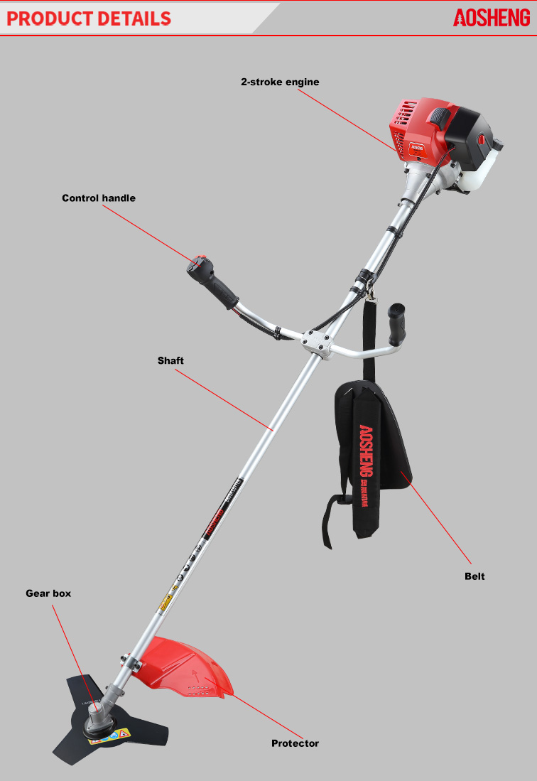 Motor de înaltă performanță în 4 timpi, deplasarea este de 38 CC. Utilizare profesională în pustiu deschis Dimensiunea tubului 26mm*1.5mm, ax flexibil rezistent. Lățimea de tăiere este de ...