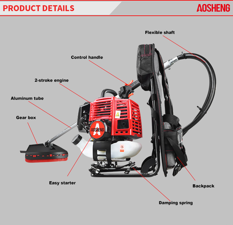 Motor de înaltă performanță în 4 timpi, deplasarea este de 38 CC. Utilizare profesională în pustiu deschis Dimensiunea tubului 26mm*1.5mm, ax flexibil rezistent. Lățimea de tăiere este de ...