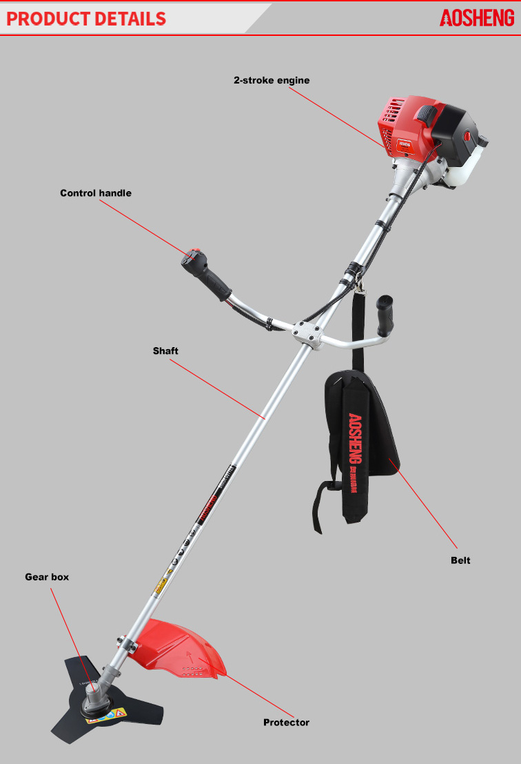 Motor de înaltă performanță în 4 timpi, deplasarea este de 38 CC. Utilizare profesională în pustiu deschis Dimensiunea tubului 26mm*1.5mm, ax flexibil rezistent. Lățimea de tăiere este de ...