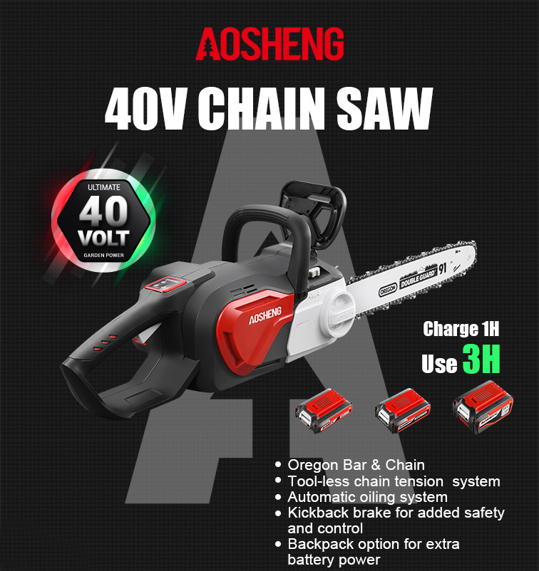 Acasă / Produse / Unelte de grădină cu baterie cu litiu / Ferăstrău cu lanț / A40LJ16B01 Ferăstrău cu lanț cu litiu-ion, 40V, 16 inchi