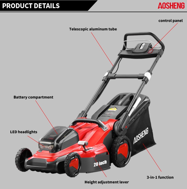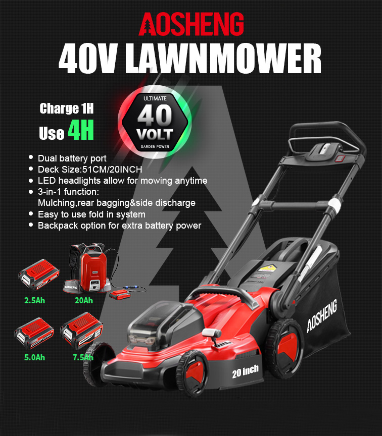Acasă / Produse / Unelte de grădină cu baterie cu litiu / Mașină de tuns iarba / A40GC20B01 Mașină de tuns iarba fără fir 40V 20inch cu baterie cu litiu